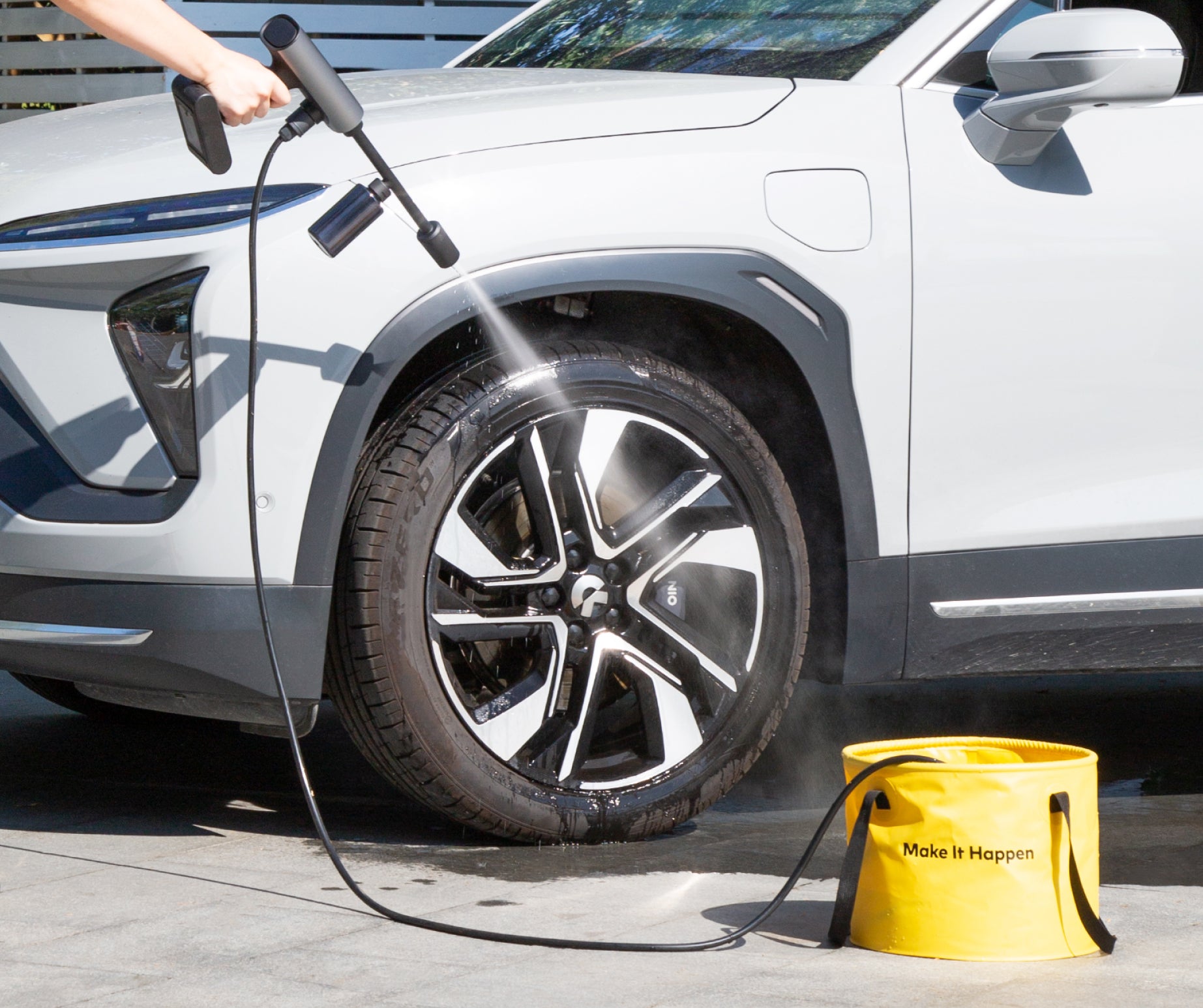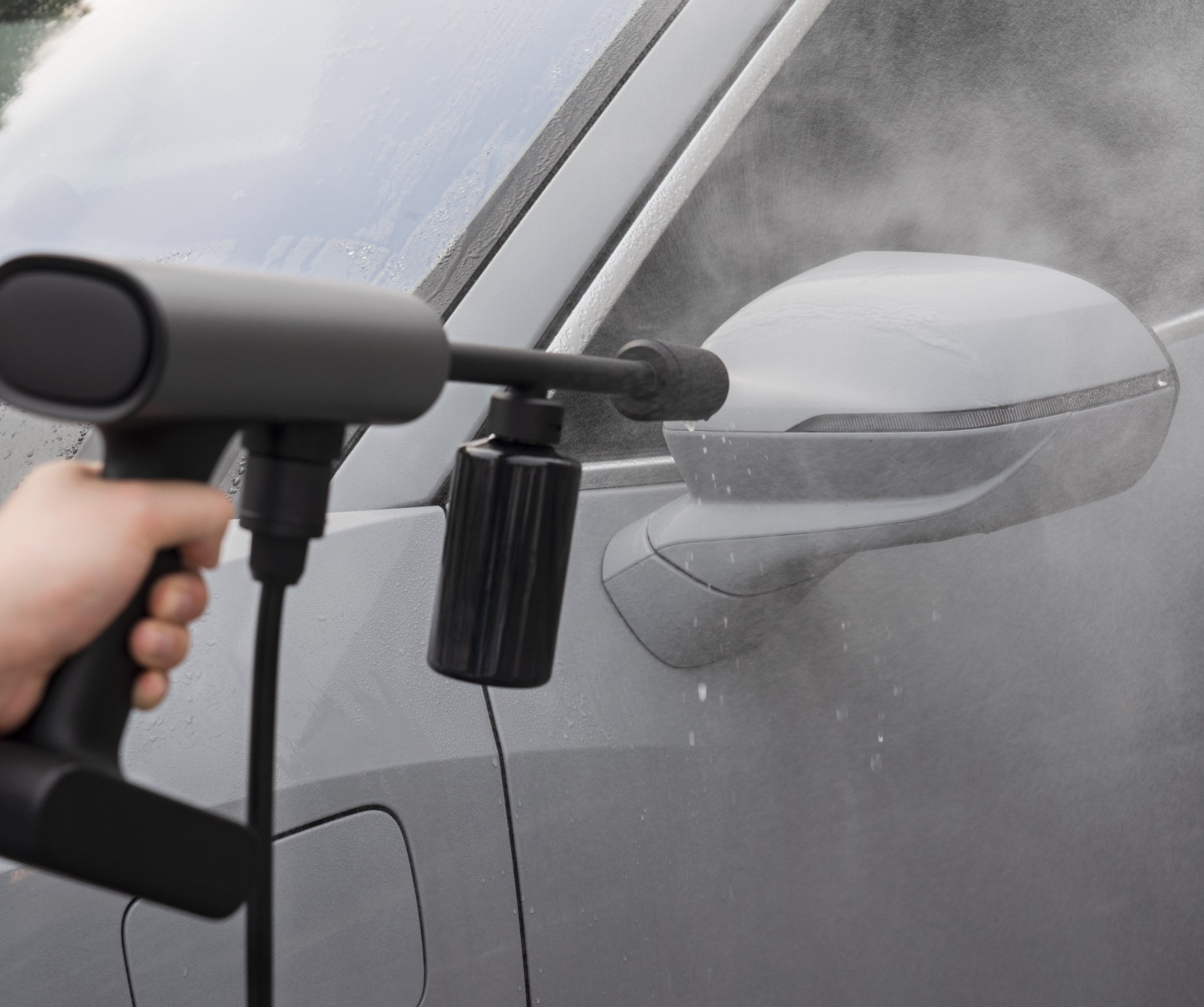 Adjust the gear for different parts of the car. Use high pressure to wash off stubborn stains.