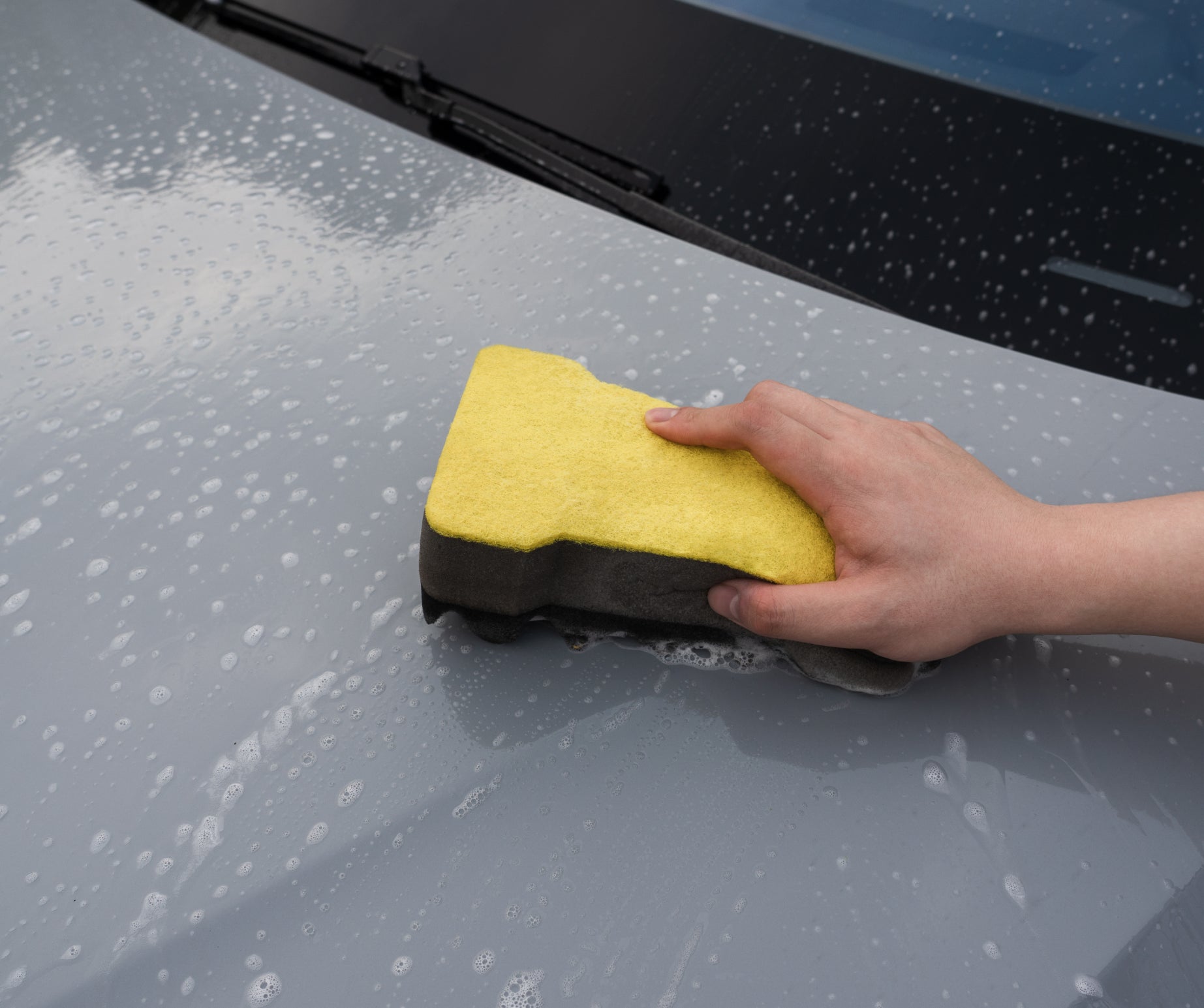High density sponge with a soft wavy side for better cleaning results and with upgraded paintwork protection. The rough side, cleaning wheels and stubborn stains. The wavy side, large areas, car body cleaning.