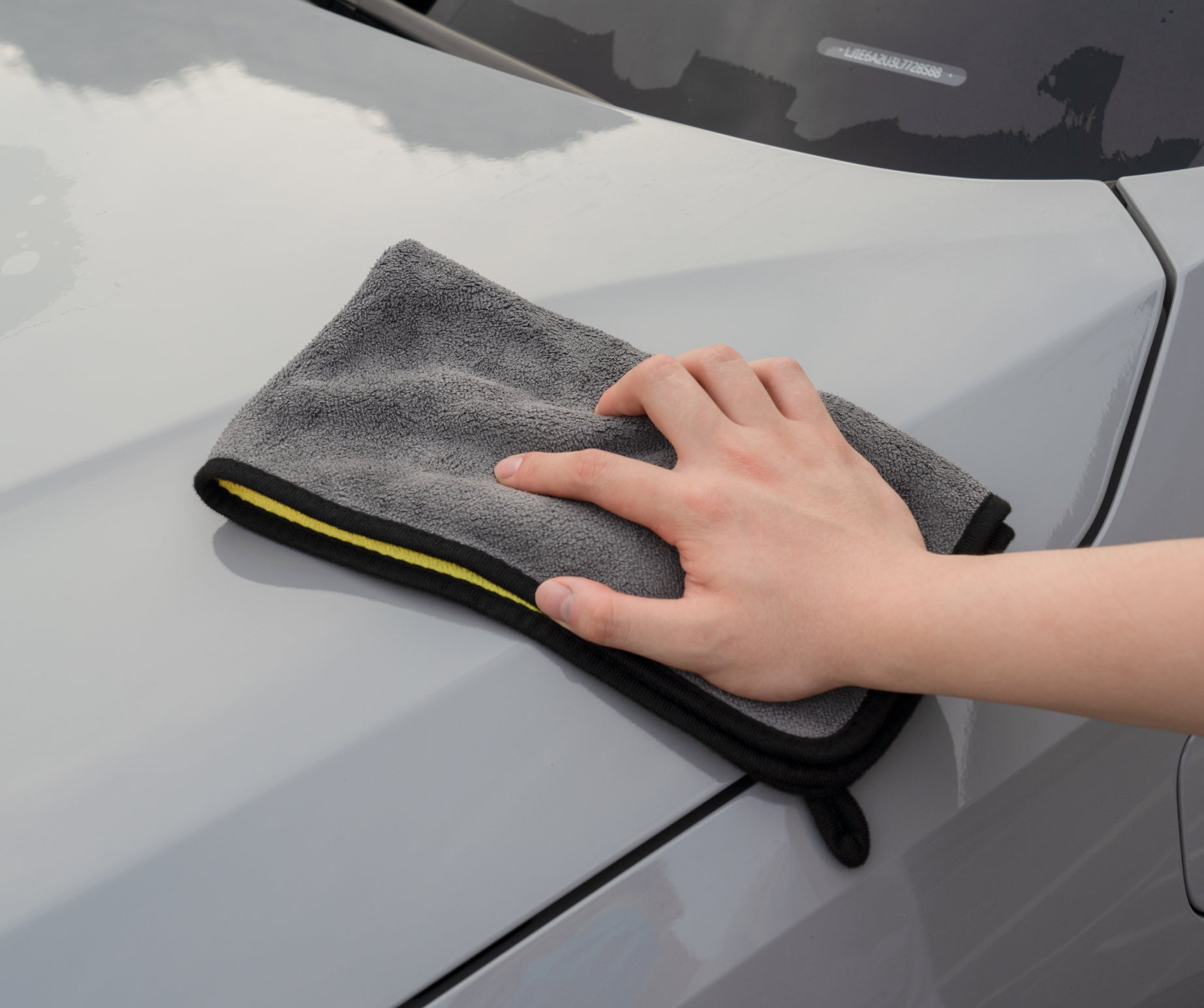 Use the cloth to clean the surface and see it transform into a brand new car.